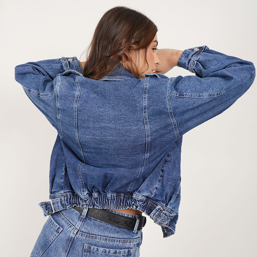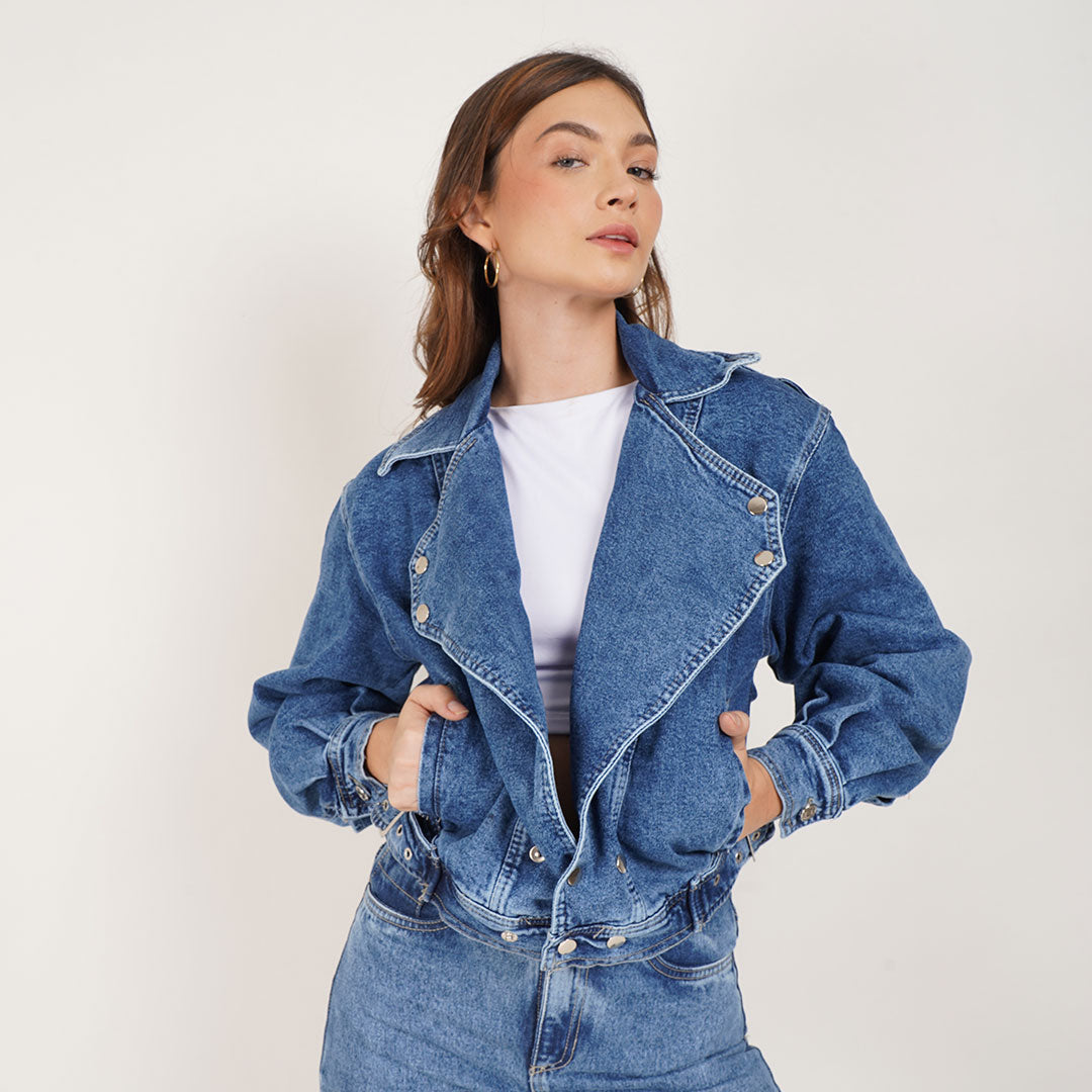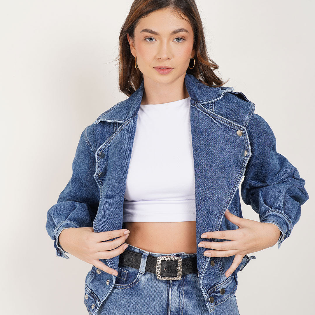 Perfecta para combinar con jeans, leggings o faldas, esta prenda versátil te acompañará en cualquier temporada. Su silueta corta resalta la cintura y estiliza la figura, ideal para mujeres con actitud y estilo único.