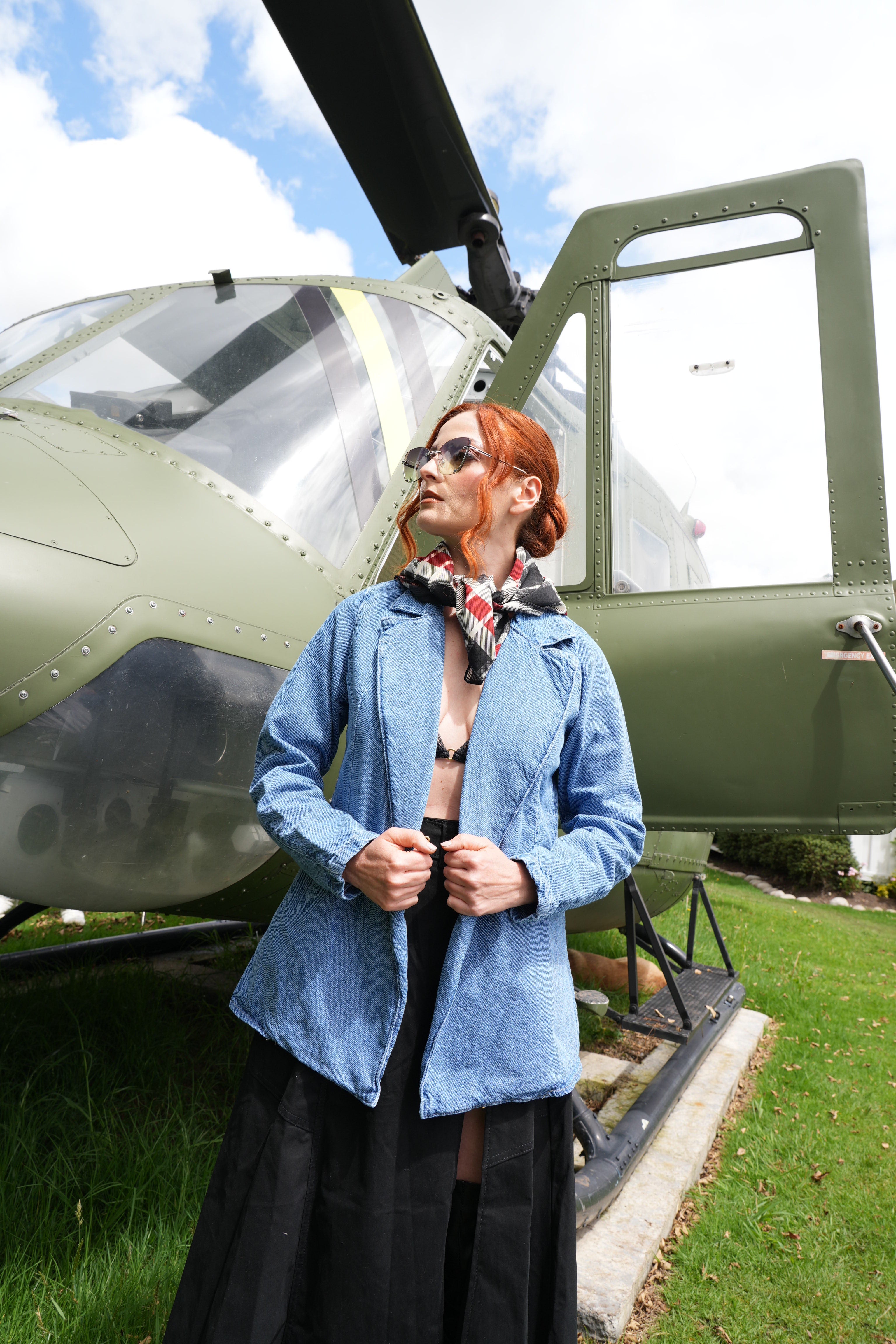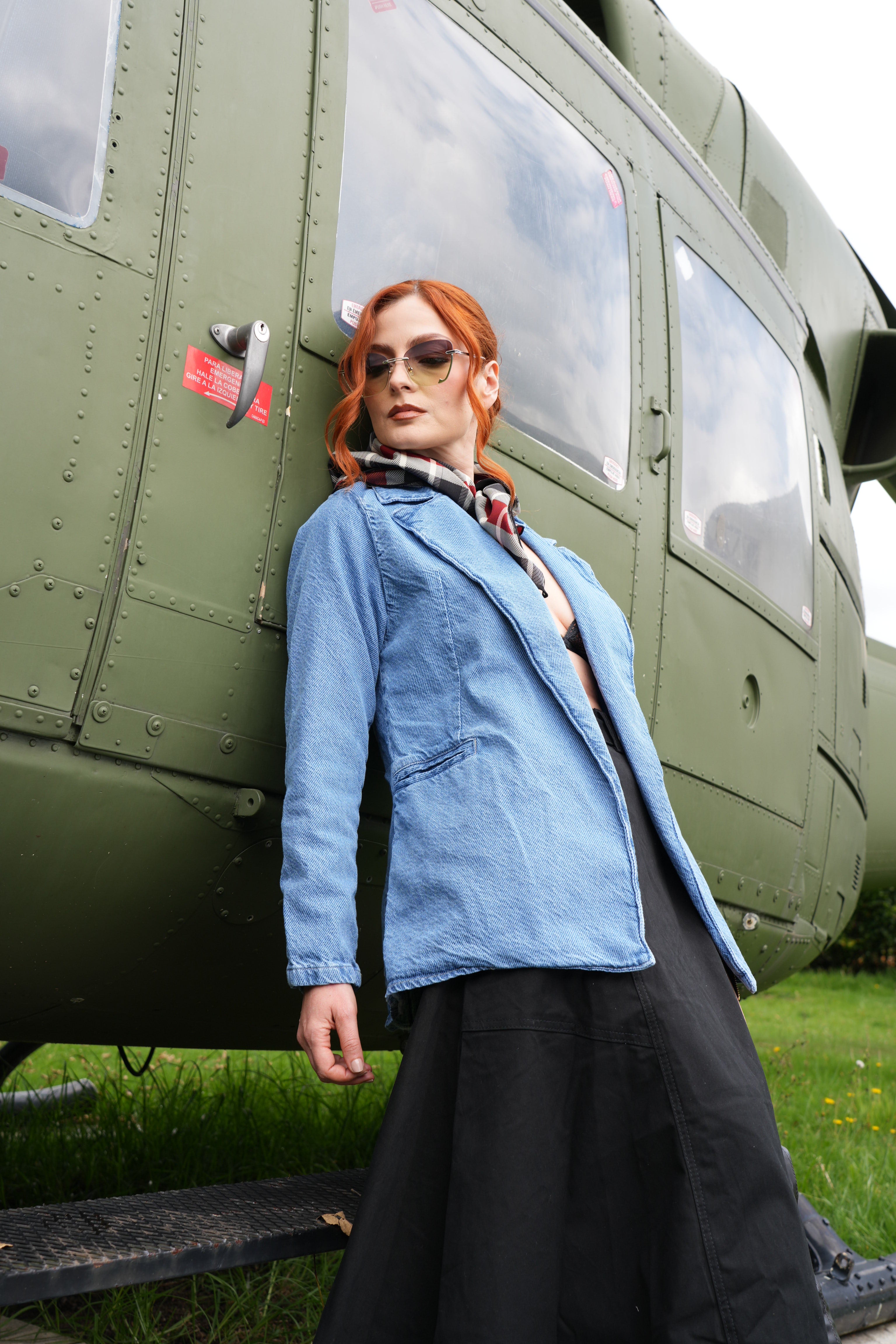 Chaqueta tipo blazer en denim azul para mujer, diseño moderno y sofisticado con bolsillos laterales. Ideal para outfits elegantes y casuales con un toque urbano.